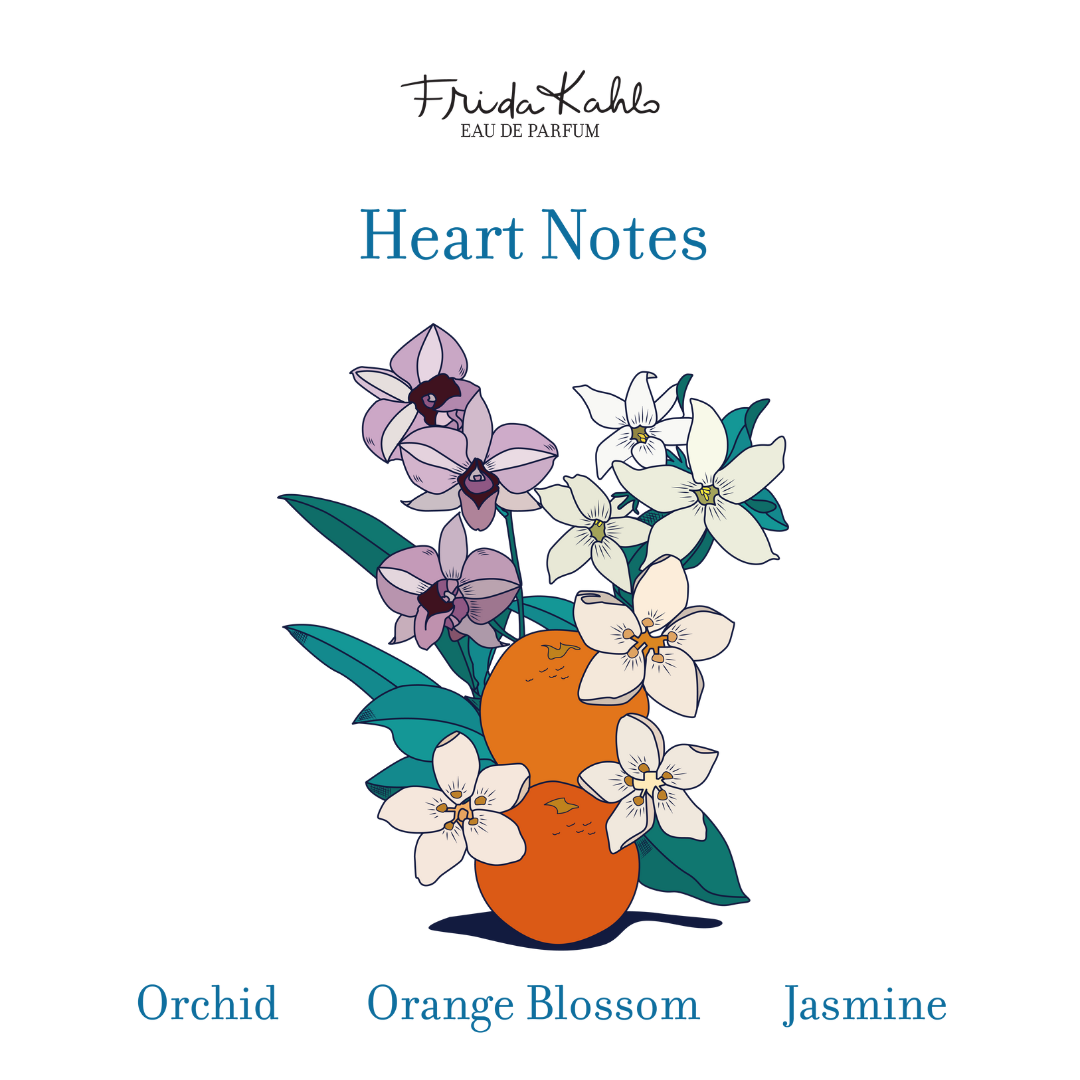 Immerse yourself in Frida Kahlo's artistry with a fragrance inspired by the sanctuary of her beloved La Casa Azul. Delicately sweet notes of Agave, Peach, and Coconut blend seamlessly with the freshness of Pear and a hint of Pink Pepper, leading into a heart of elegant Water Lily, Orchid, and Jasmine. As the scent unfolds, the warmth of Mexican Vanilla, Amber, and Tonka Bean lingers, embodying the richness and soul of Frida's world and inviting you to explore your inner sanctuary.