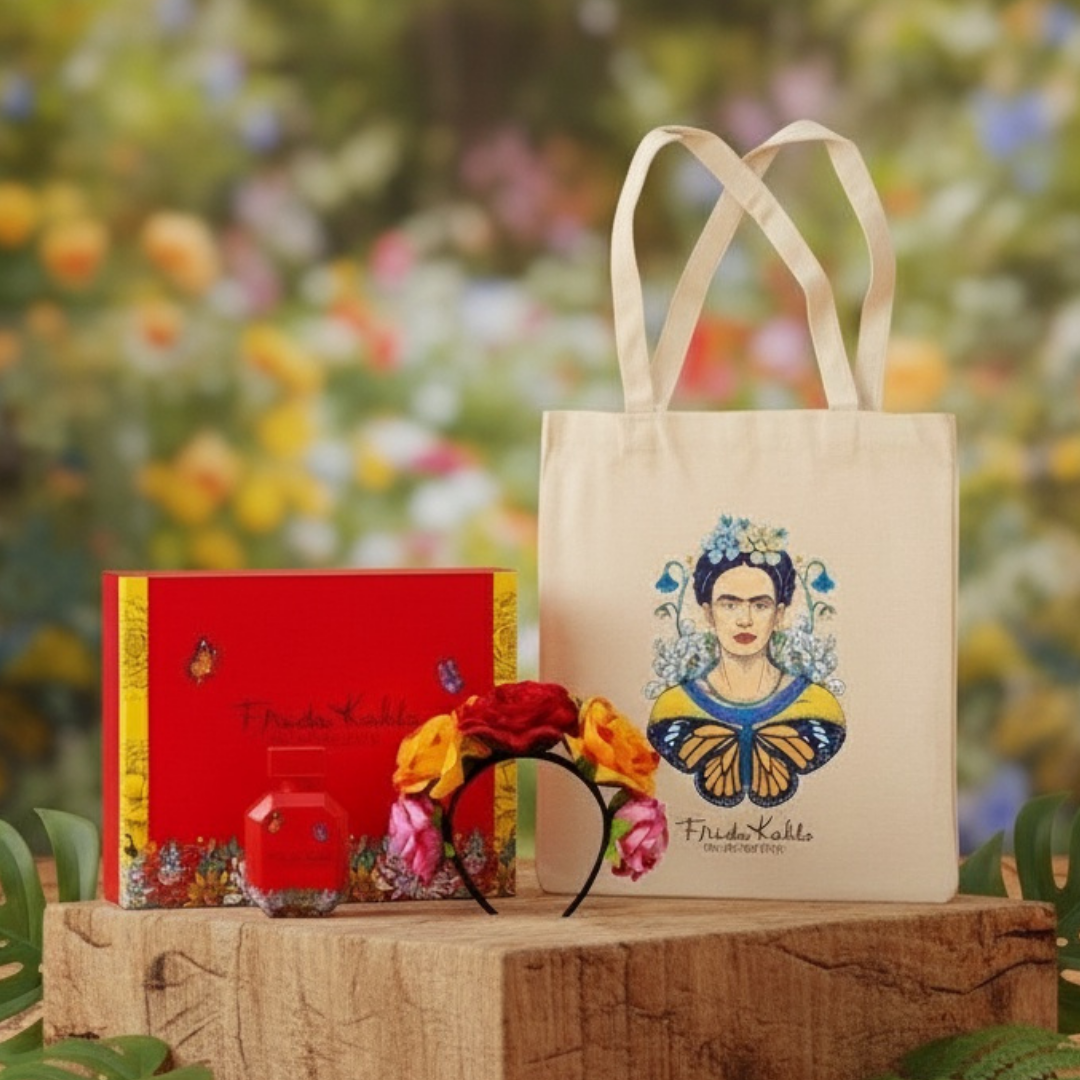 Immerse yourself in Frida Kahlo's iconic scent with our exclusive EDT in its Deluxe Edition, beautifully paired with the ultimate PR gift box, a blooming flower crown, and a charming tote bag.